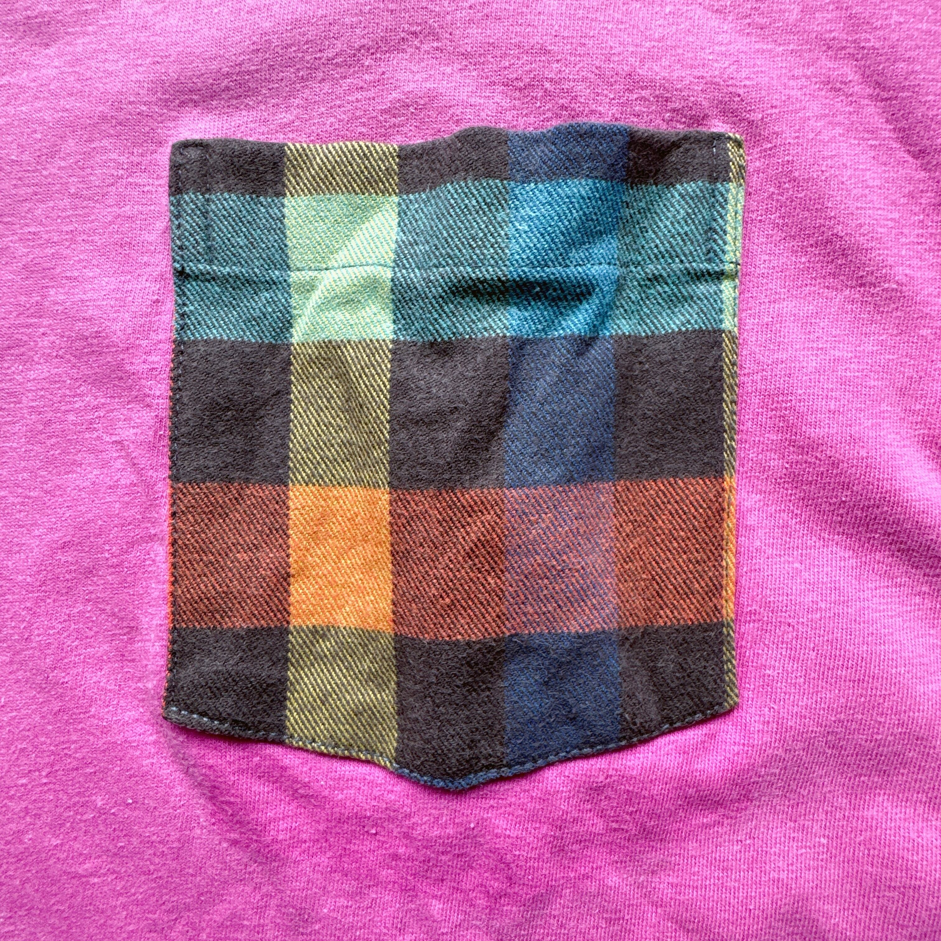 ギャップのポケットTシャツといえば無地ですが、こちらはポケット部分のみマルチカラーのチェック柄になっています。