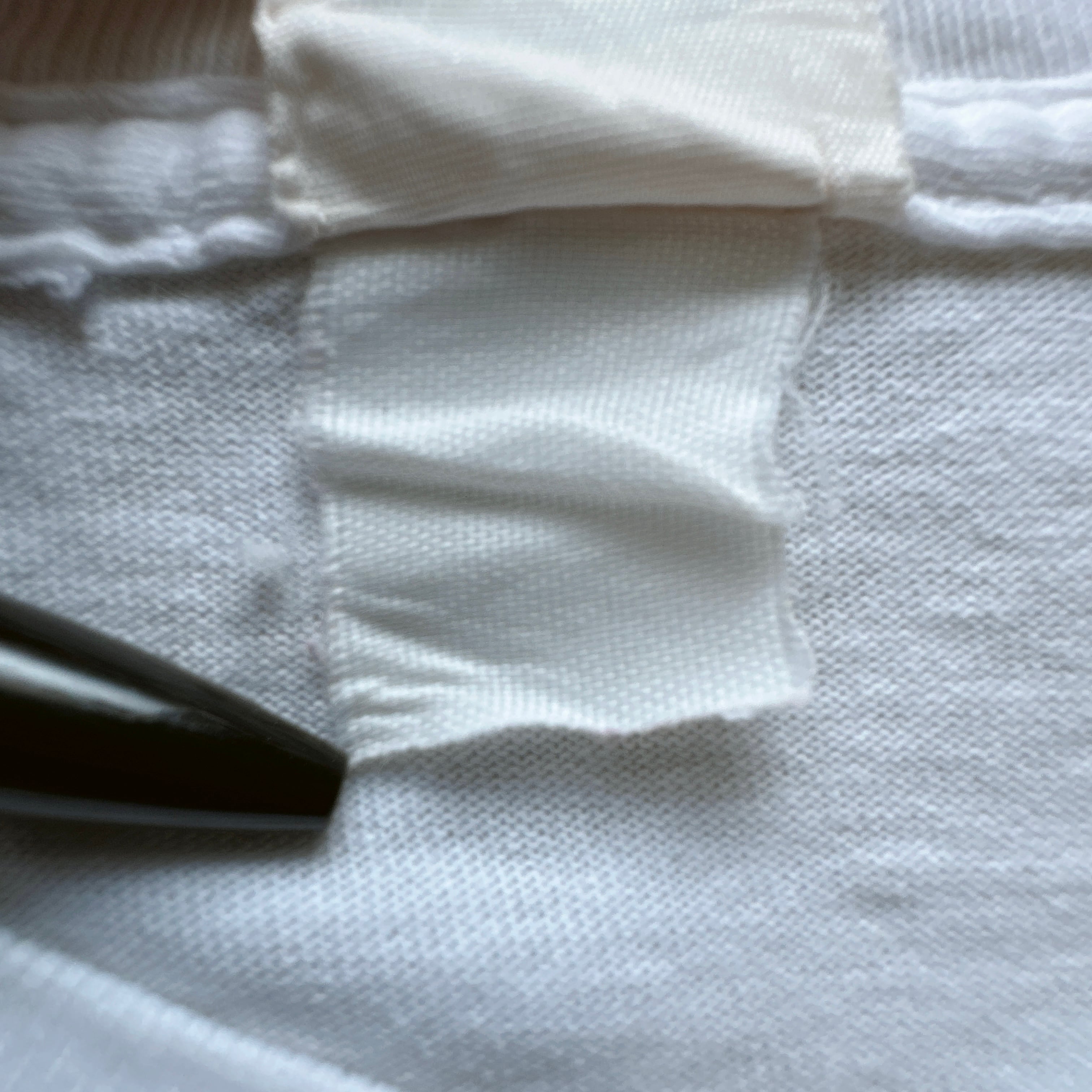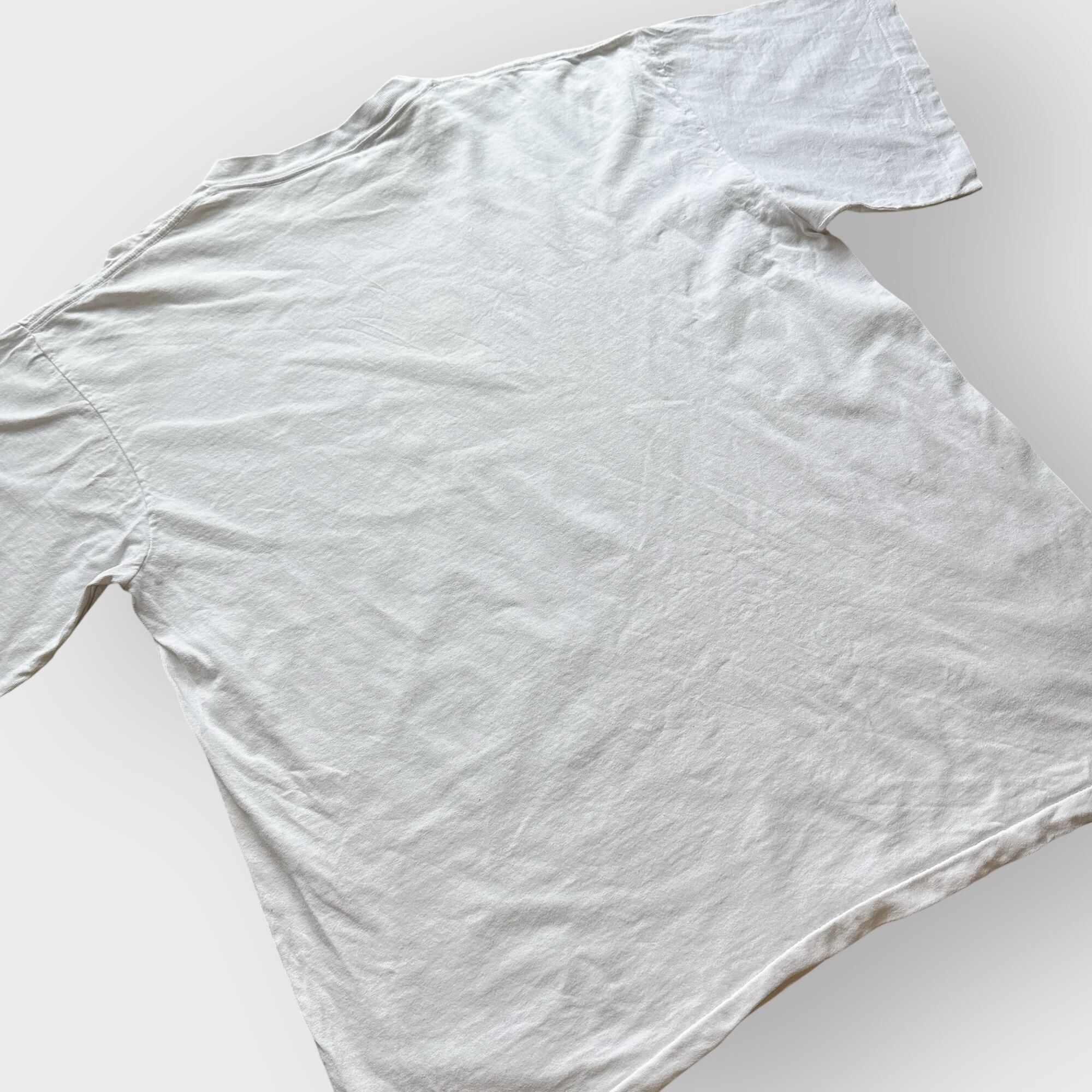 袖裾シングルステッチ、恐らくコットン100%のしっかりした生地感のホワイトボディ。