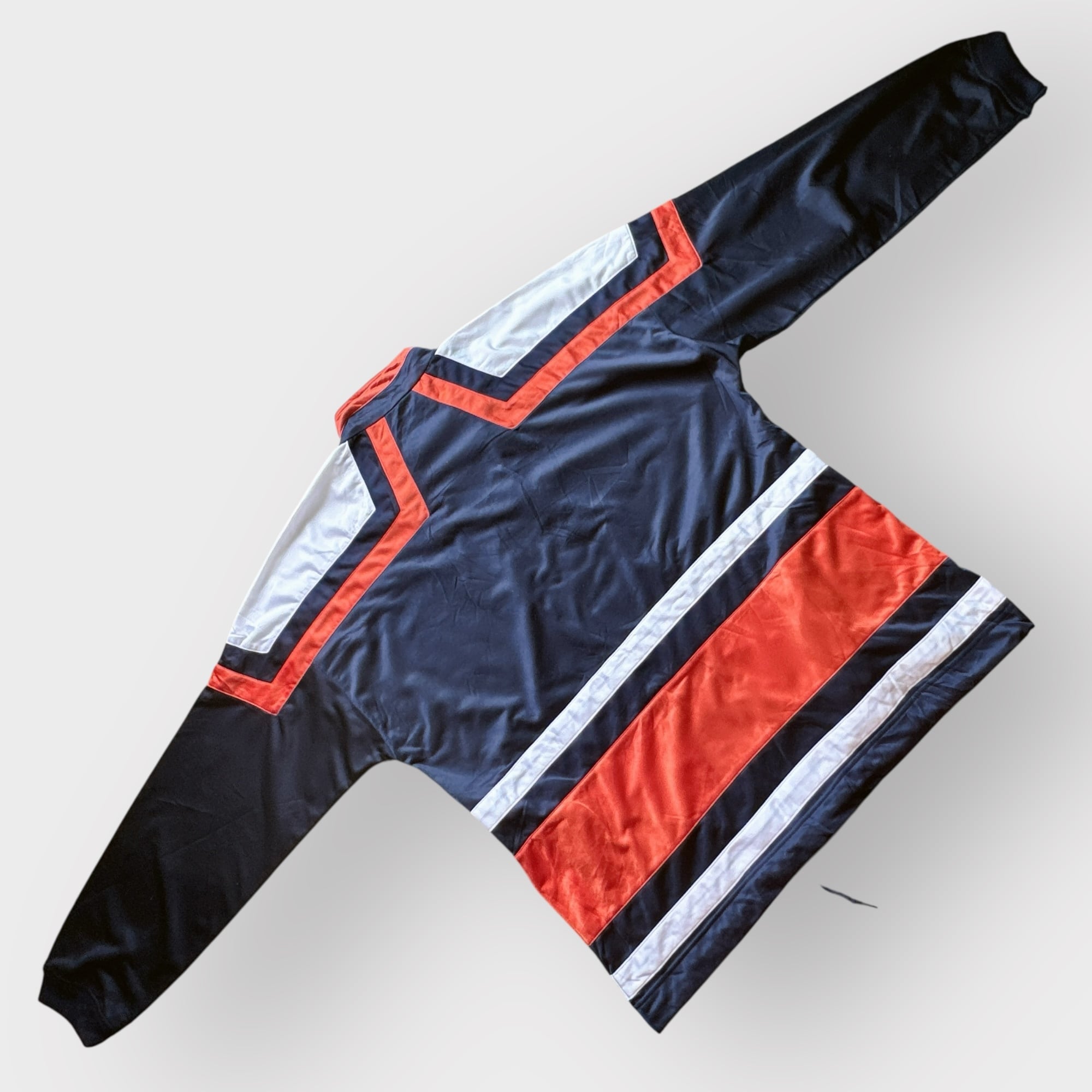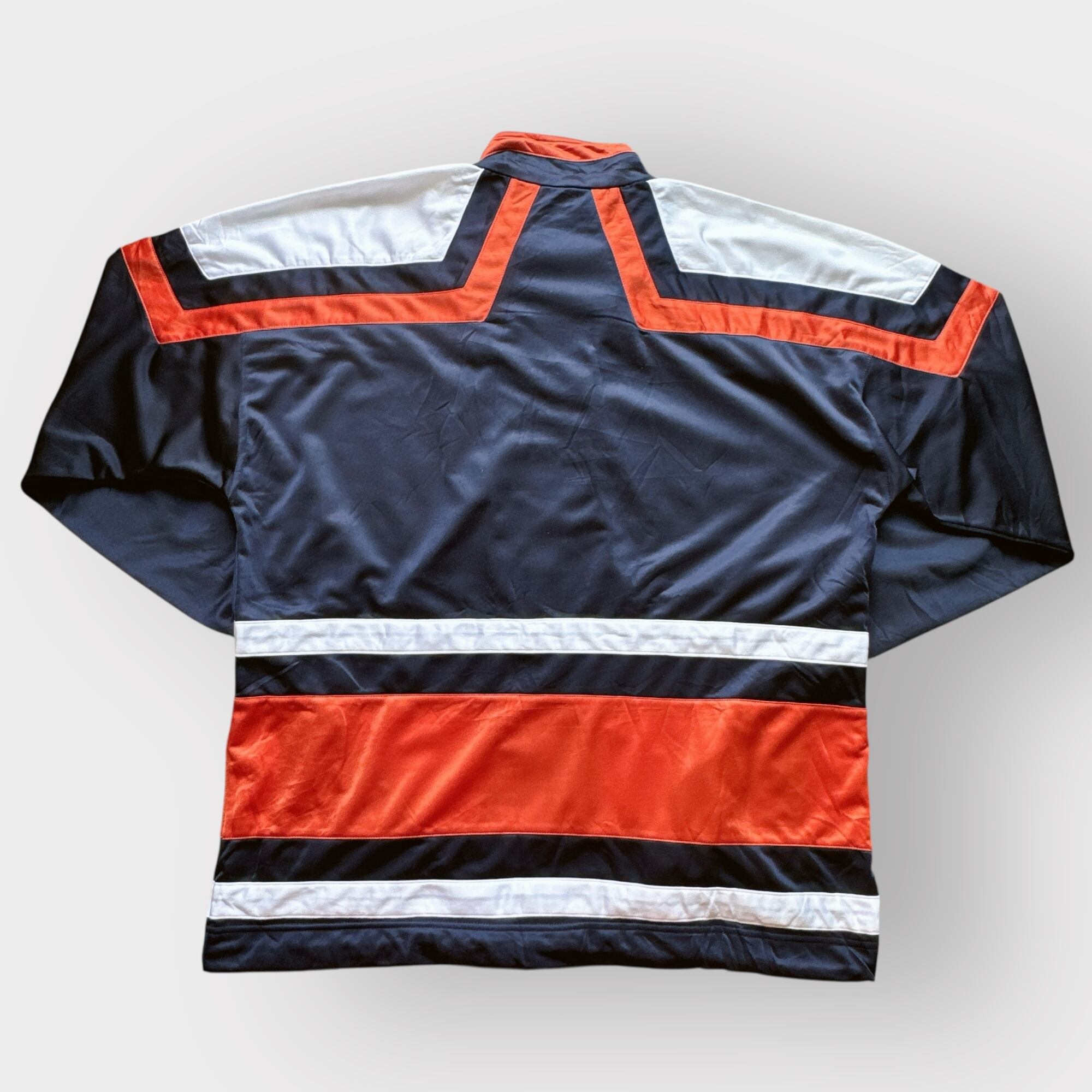 ネイビーカラーベースにオレンジとホワイトのラインが特徴的なデザイン。
