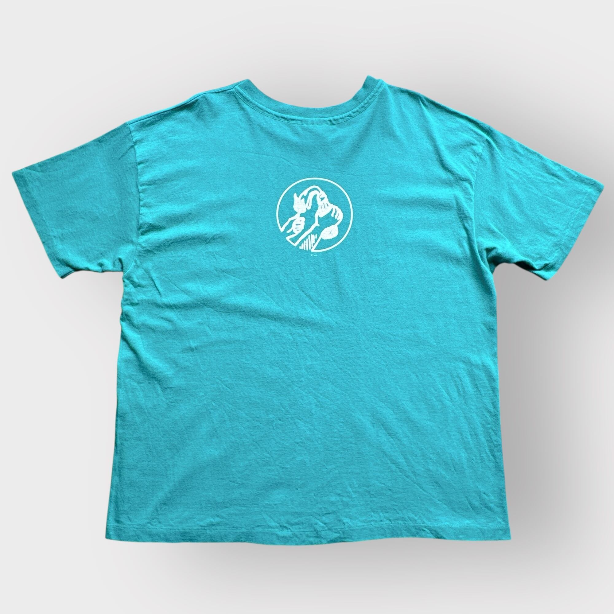 袖裾シングルステッチ、ミントグリーンの発色の良いボディに、両面プリント。