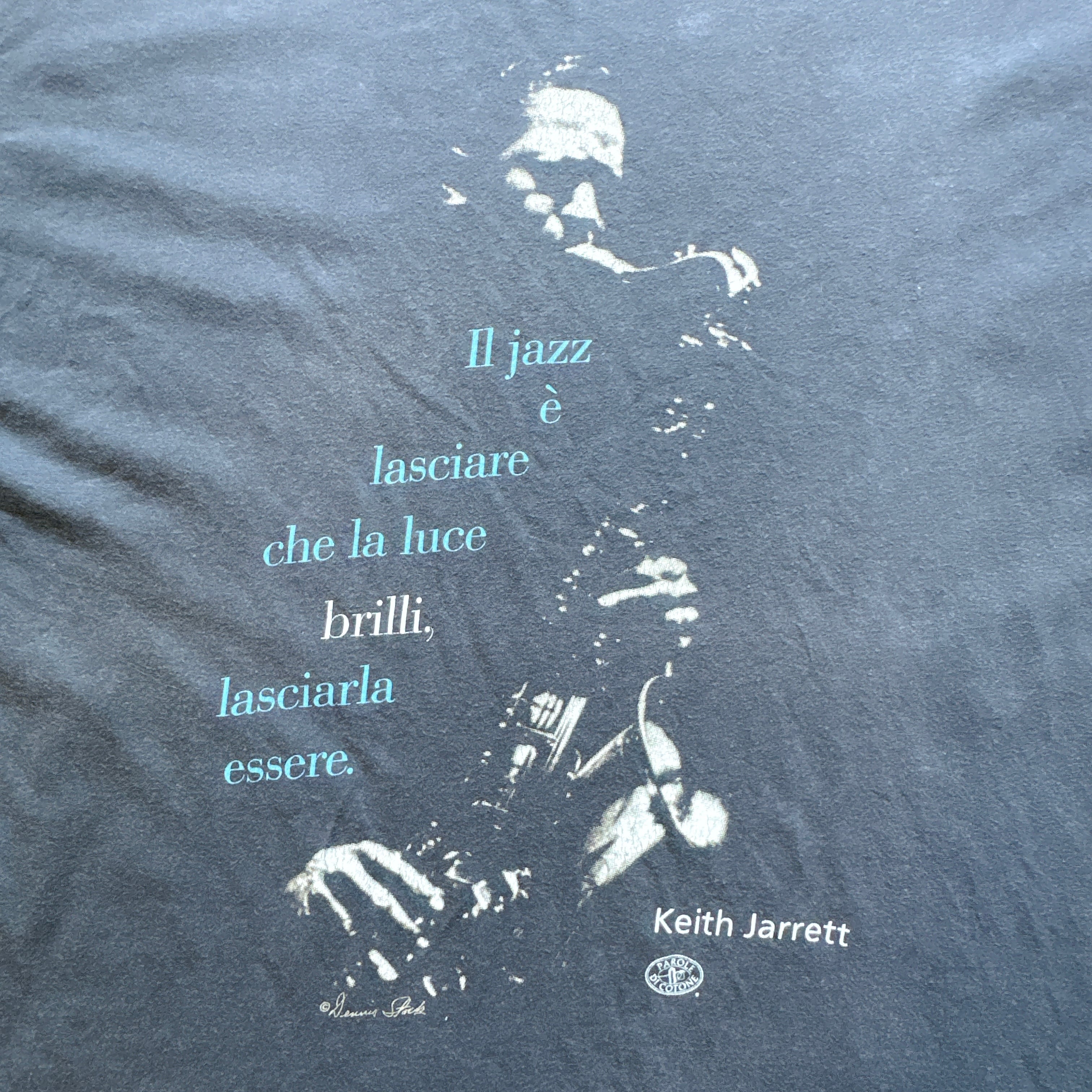 このTシャツは彼の撮影した写真と、キース・ジャレットというピアニストの言葉がイタリア語で書かれています。