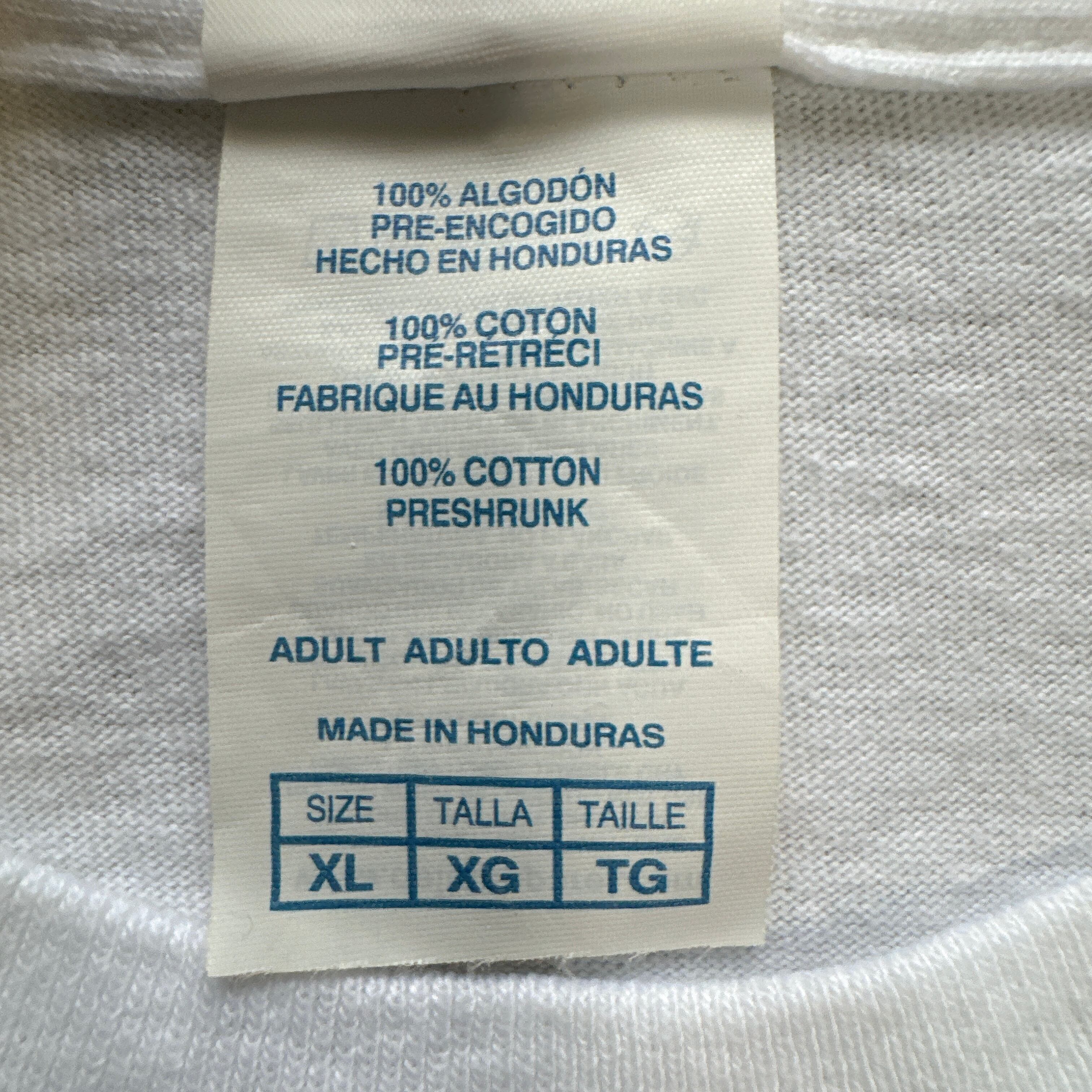 コットン100%の薄手の生地、ホワイトボディのXLサイズです。