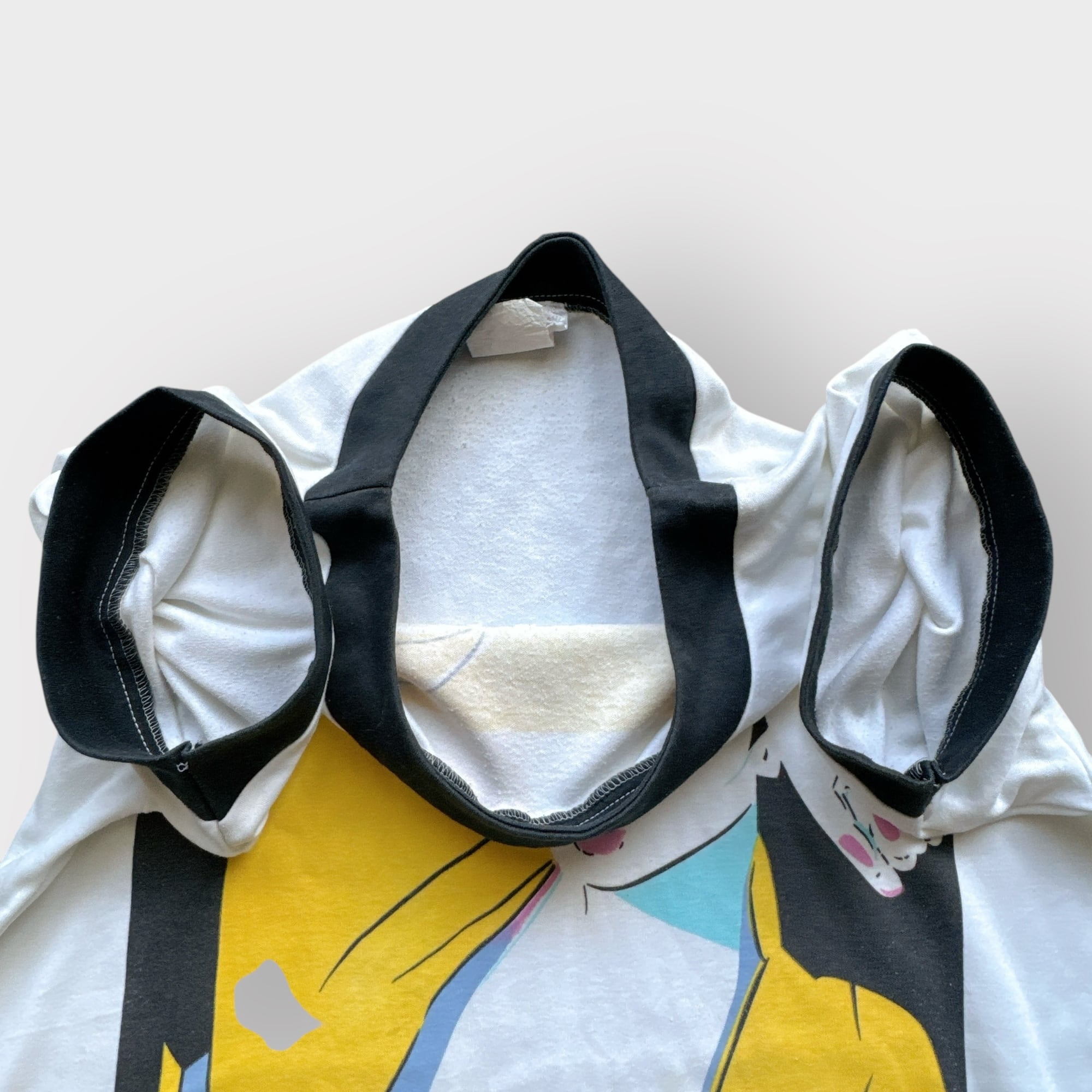 リンガーのリブの幅が広く特徴的、裾はシングルステッチ。