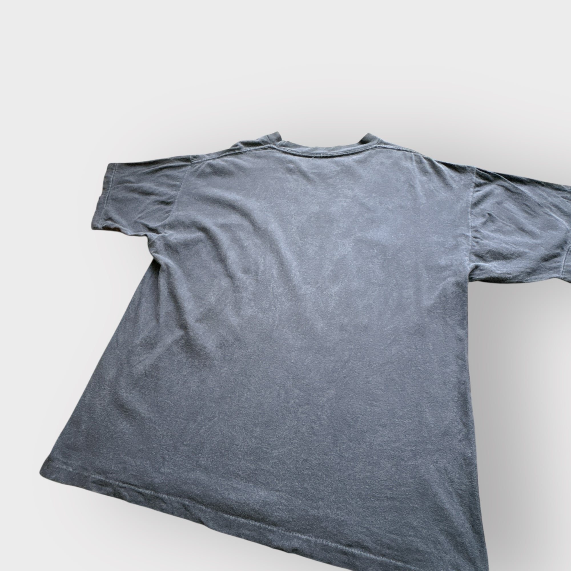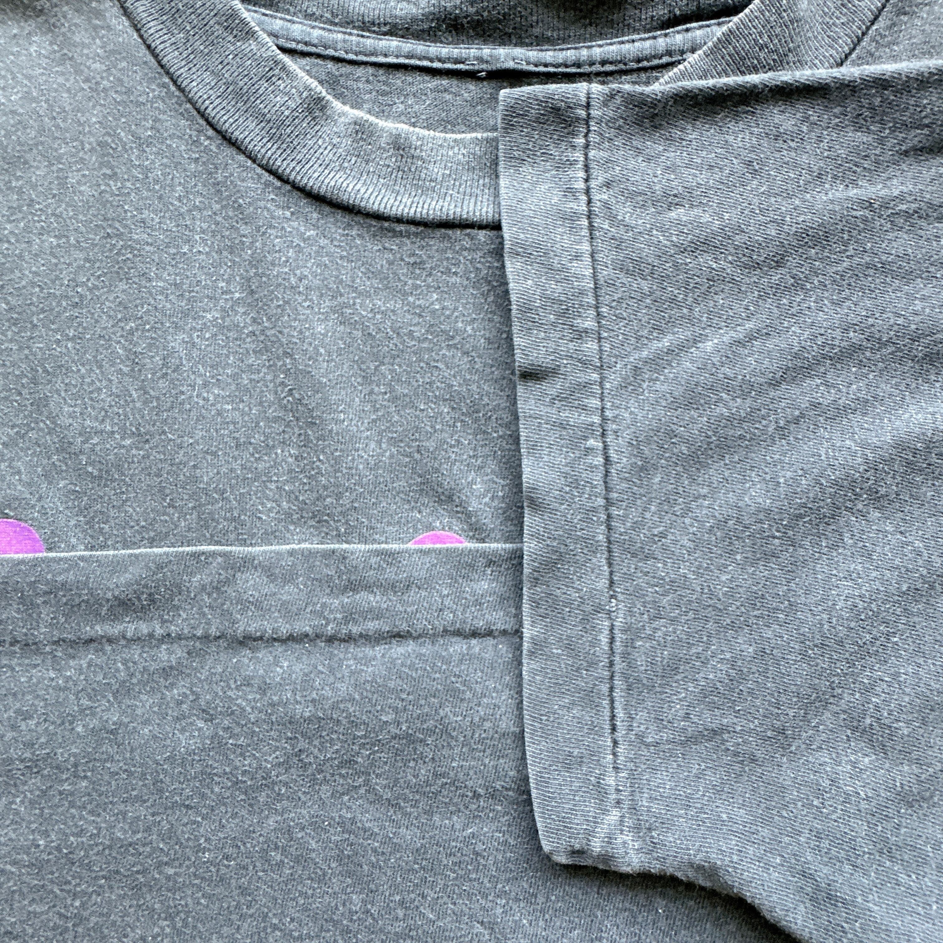 このTシャツは袖裾シングルステッチ、フェードの効いたブラックボディに、フロントにメンバーのシルエットとサインの書かれたデザイン。
