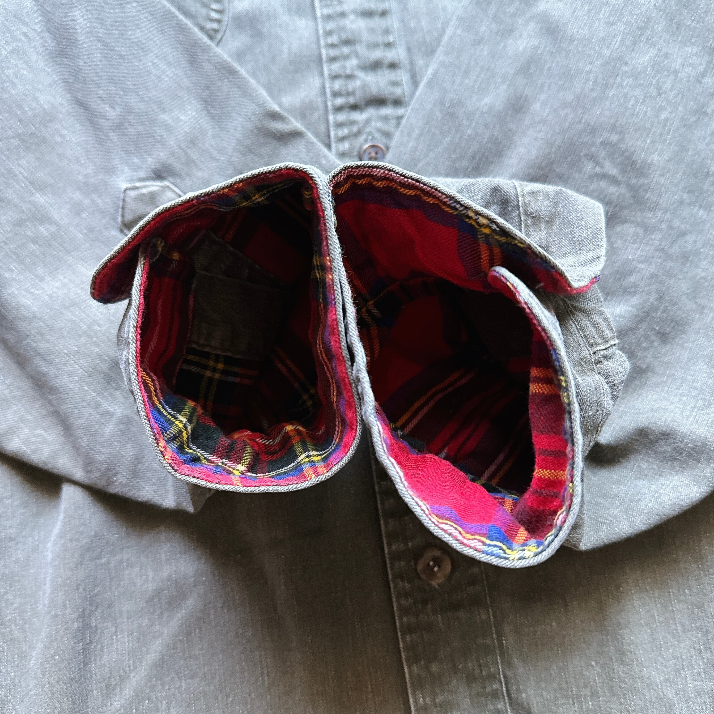 レギュラーカラー、両胸にフラップポケット。